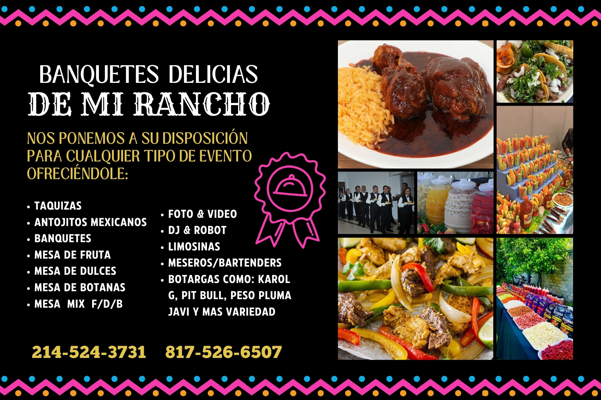 Filters Show all mariachisphotoboothsalon de fiestaselegant tables & chairsBellezaDecoracionesBanquetesBANQUETES DELICIAS DE MI RANCHODecoraciones YvonneAurora Event CenterLas Hadas BallroomEl Tiburón BallroomPlaza de las Americas SalónRegio BallroomNew You LooksBale Beauty AcademyElegant tables & chairsAguilar EventsCanales Special EventsSueños PhotoboothMariachi Alma Latina