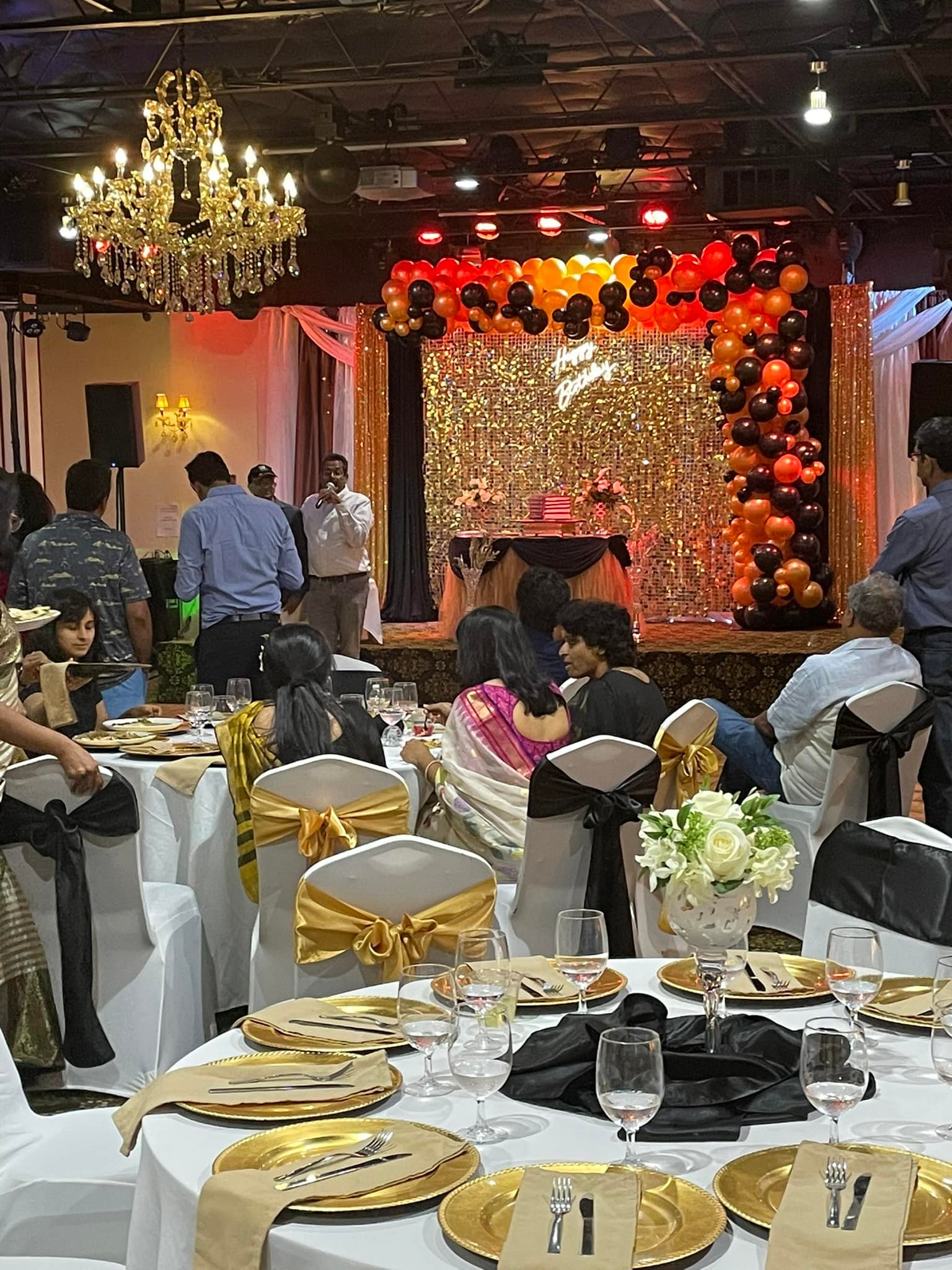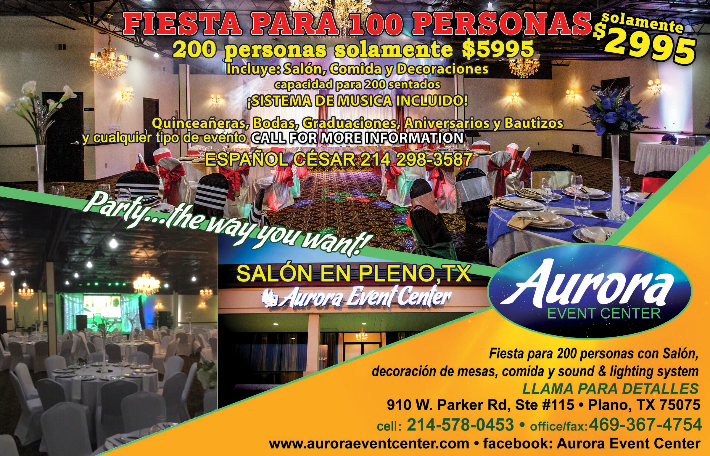 Fiesta para 200 personas con Salón, decoración de mesas, comida y sound & lighting system. Menciona www.suenosmagazine.com